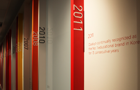 Three main colors used for second and third floors each represents Daekyo's corporate core values: Honesty, Passion, and Respect.